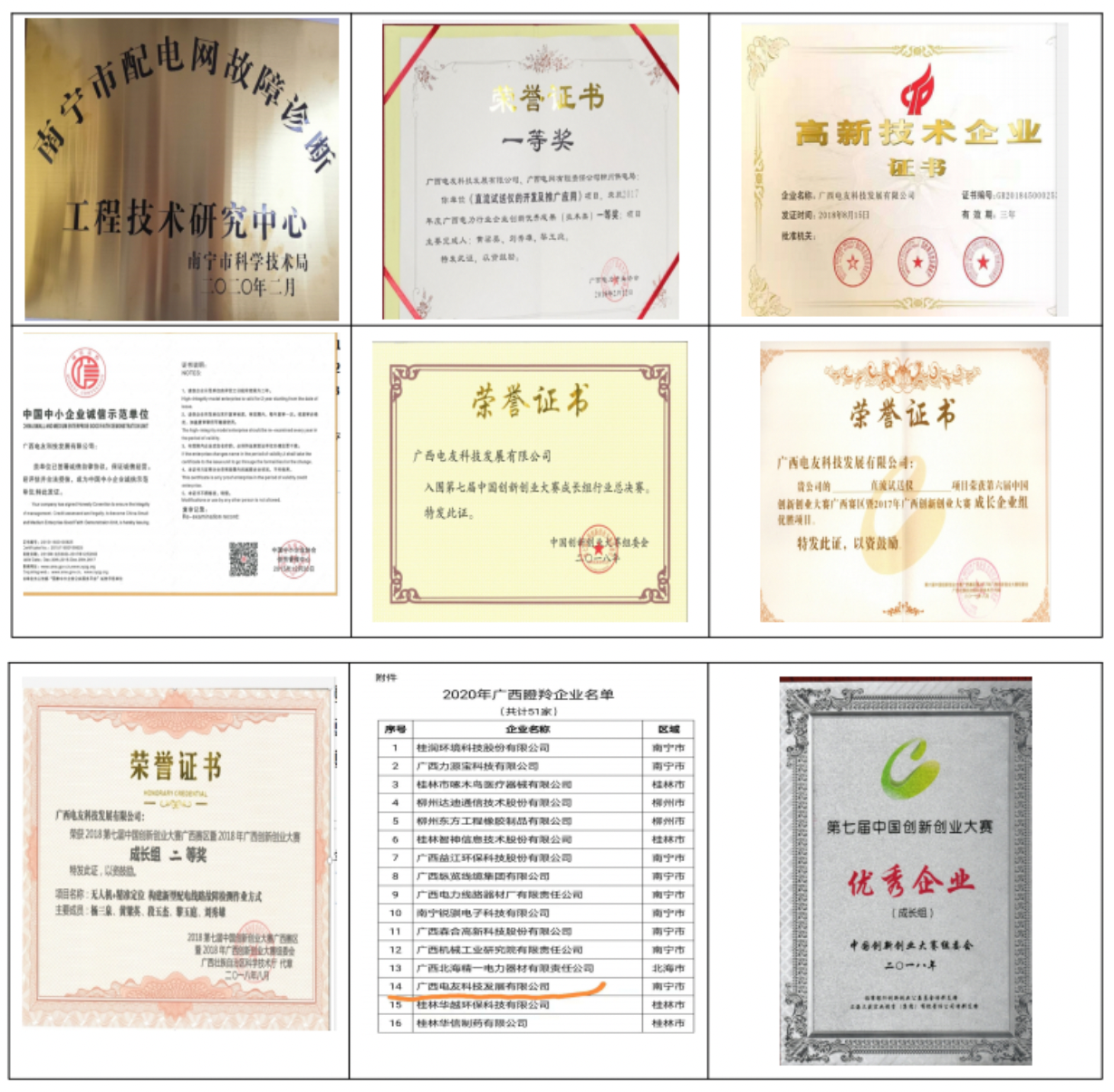 截至2023年,广西电友科技发展有限公司连续2年获得广西电力行业创新优秀成果(技术创新)一等奖,并在2017到2021期间连续5年获得广西“守合同重信用”荣誉,先后荣获广西电力行业协会颁发的“年度广西电力行业 企业创新优秀成果(技术类)一等奖”、南宁科技局“亲商强企.科技服务单位”、广西科学技术进步奖三等奖、南宁市工程技术研究中心、广西科学技术进步奖三等奖、广西新型研发机构、广西“专精特新”中小企业、广西知识产权优势企业等荣誉称号。