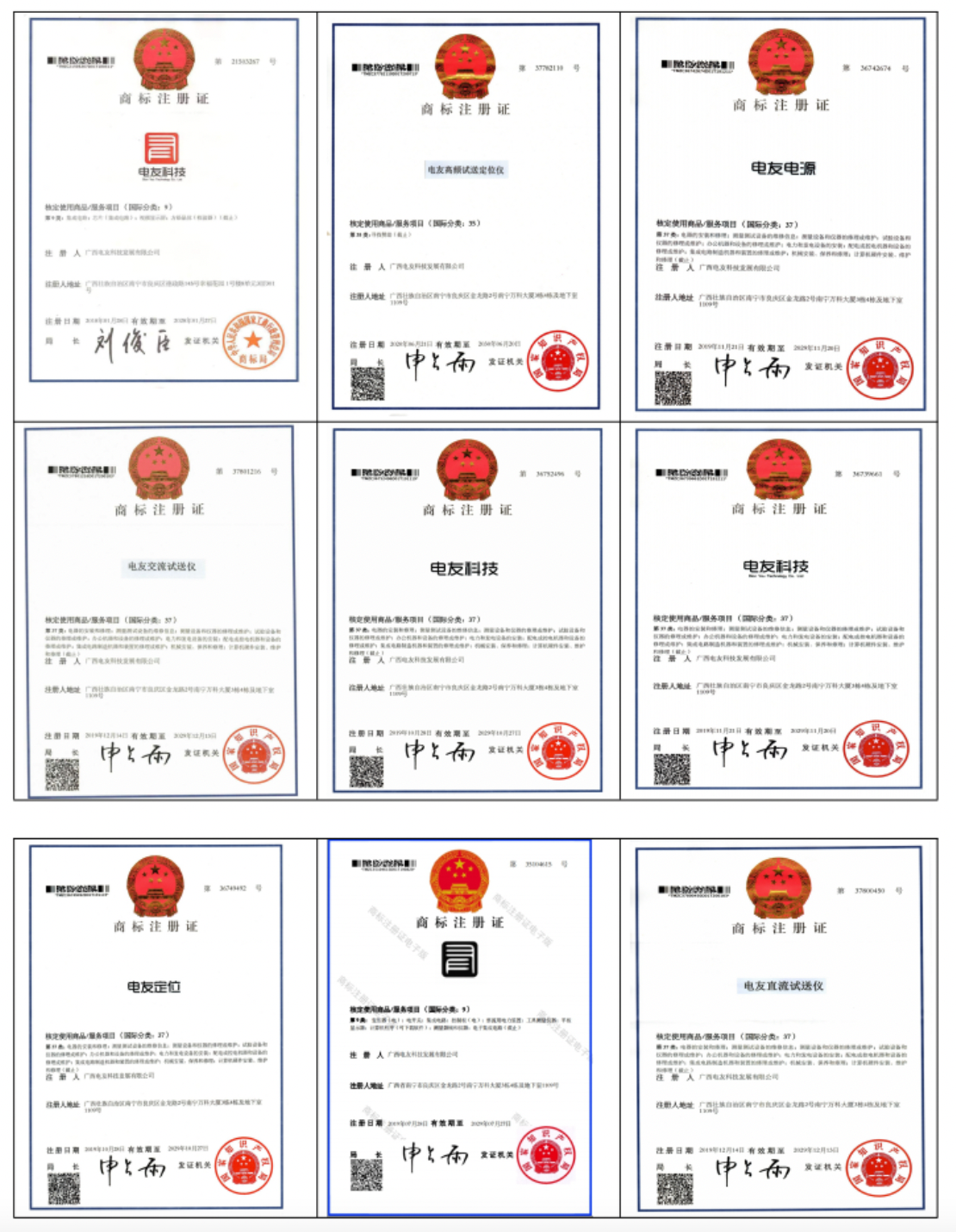 广西电友科技发展有限公司现已通过了ISO标准质量、环境、知识产权、职业健康安全管理四体系认证,是专业从事各种电气检测与试验设备研发、生产、销售与服务的现代化国家高新技术企业、自治区瞪羚企业、市工程研究中心。拥有核心专利及商标各30多项。先后获得广西科学技术进步奖,南宁科学技术进步奖,广西数字标杆企业等多项政府荣誉!产品在南宁、桂林、玉林、百色、深圳、广州、西安等地深受欢迎,被广泛应用于大型输配电工程、供电电站等多项工程。公司在南方电网所辖5省设有销售及售后服务机构,在南方电网、国家电网历年的质量检测及抽查中均无不良记录,具备完善的质量与售后保障能力。