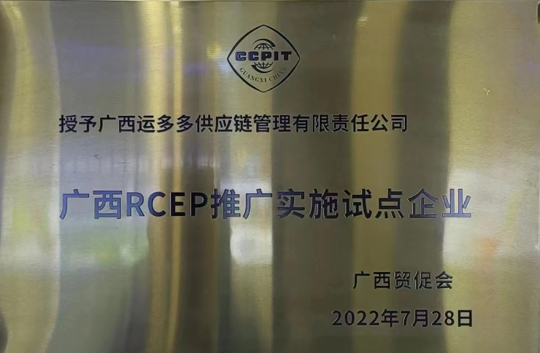公司于2022年7月28日被广西贸促会授予“广西RCEP推广实施试点企业”是广西贸促会批准的首批8家试点企业之一。