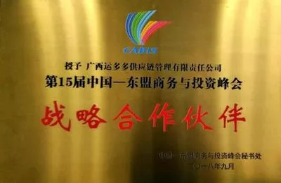 公司成立以来,积极抢抓中国—东盟自贸协定和RCEP机遇,利用关税减让优惠政策,合理布局面向东盟的供应链,做大做强跨境物流。2021年平台入驻境内外物流公司126家,年货运量突破100万吨。运多多于2019年策划并承办的首届“中国—东盟水果产业发展论坛”及2021年发起的“推动陆海新通道跨境供应链数字化协作项目”先后被列为第16届和第18届中国—东盟商务与投资峰会的重要成果。公司还是第15届中国—东盟商务与投资峰会战略合作伙伴,中国国际商会广西商会水果行业协会会长单位。