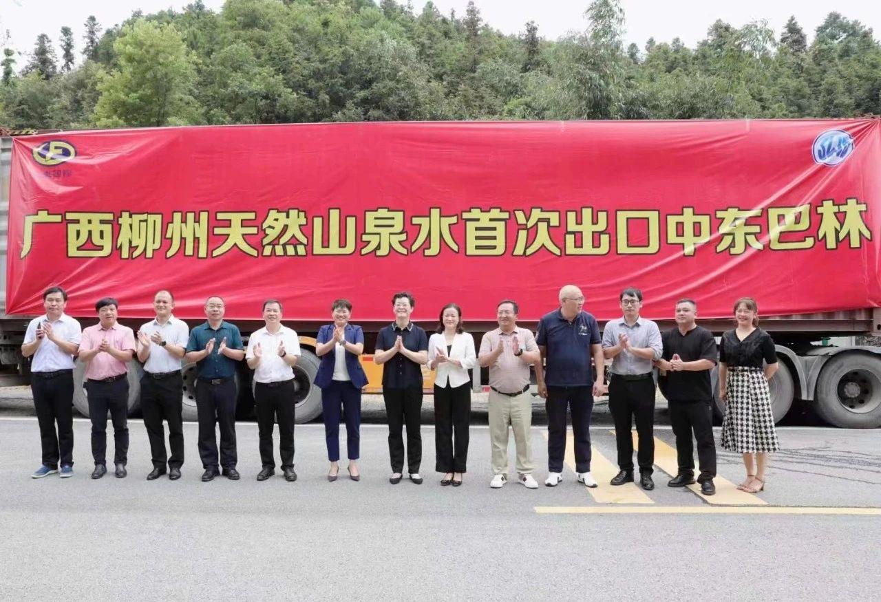 柳产天然山泉水首次出口中东巴林发车仪式现场