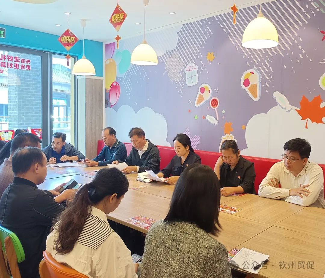 2024年11月7日,钦州市贸促会党支部联合钦南区食品行业协会党支部,协同“新通道枢纽党建联建共建”党支部以行动调研学习与专题党课学习相结合的方式开展学习贯彻党的二十届三中全会精神暨强化意识形态管理工作培训会。