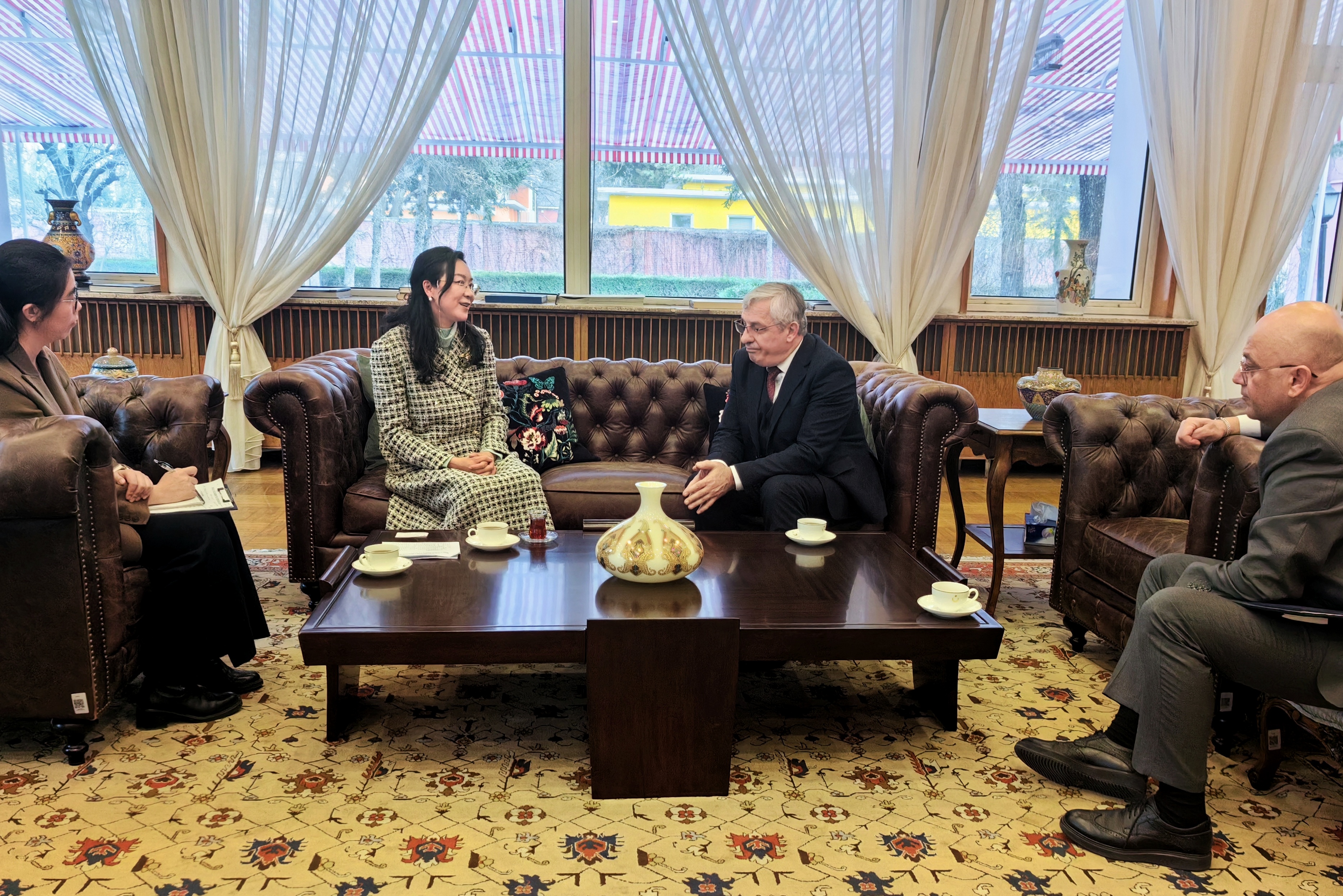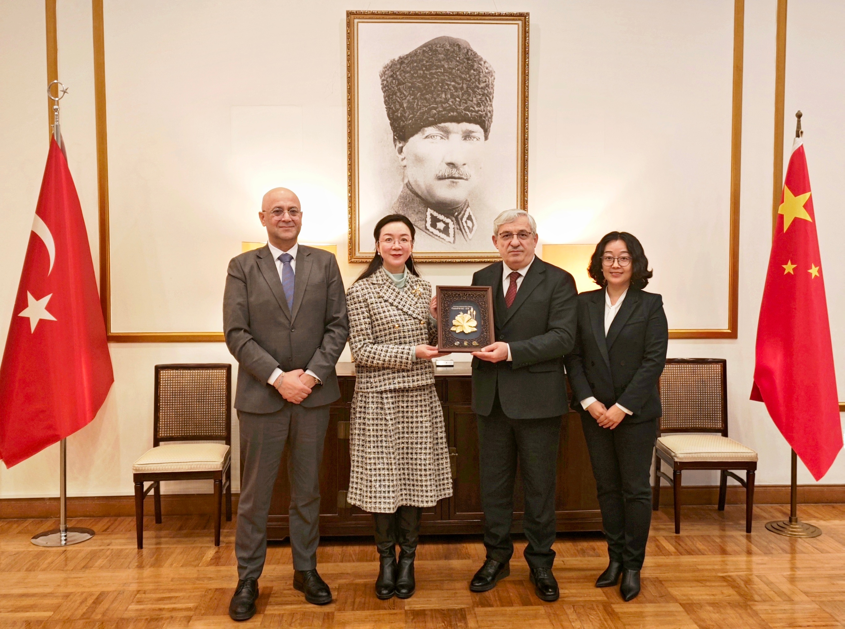 1月12日下午,广西促会会长杨雁雁在北京拜会土耳其驻华大使穆萨,双方就加强机构合作、促进商协会往来、推动双向贸易投资等方面进行深入交流。