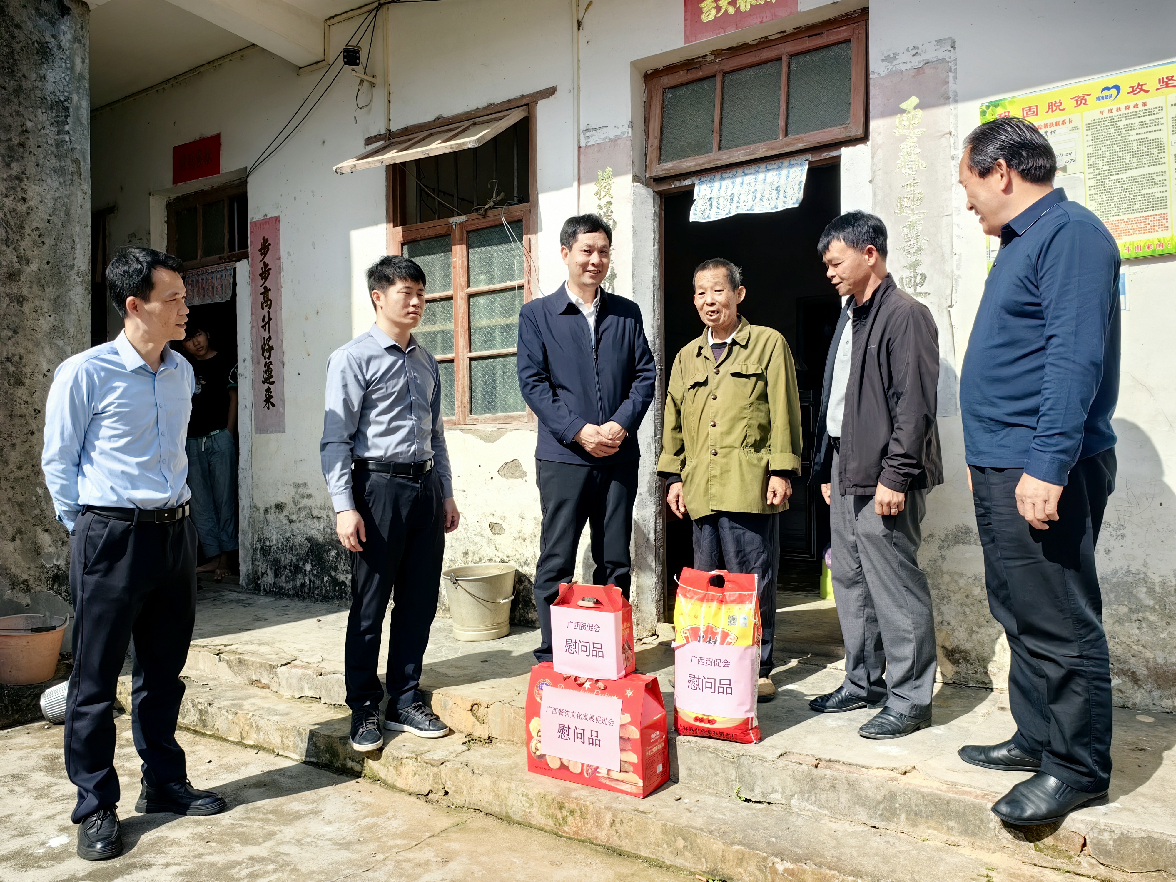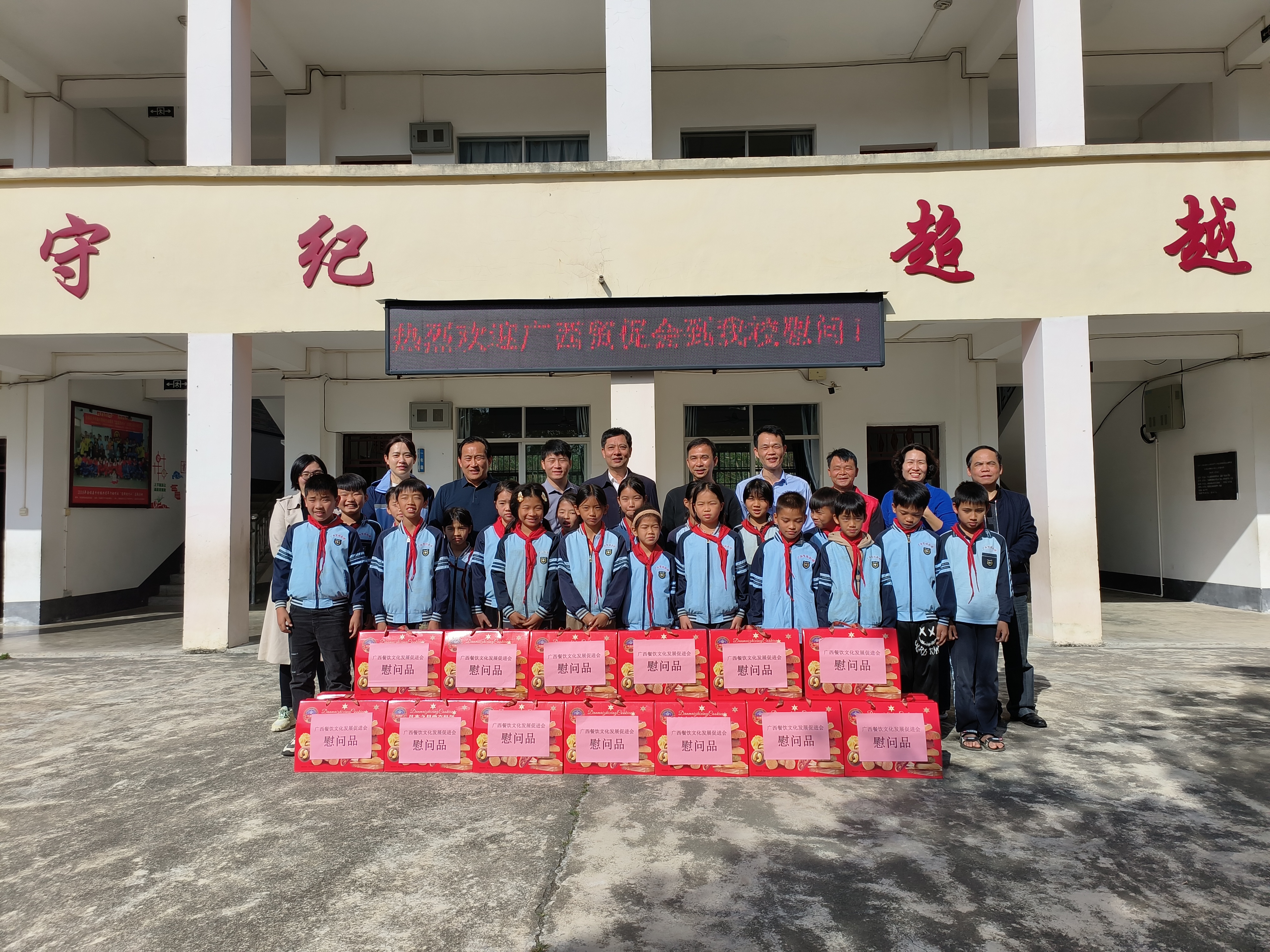 调研组一行深入学校、困难党员和群众家中开展走访慰问并看望了广西贸促会派驻的工作队长、工作队员,勉励他们扎根乡村,助力乡村振兴取得新的成效。广西桂菜发展促进会、广西餐饮文化发展促进会捐赠一批慰问品,以实际行动支持乡村振兴,彰显社会责任担当。