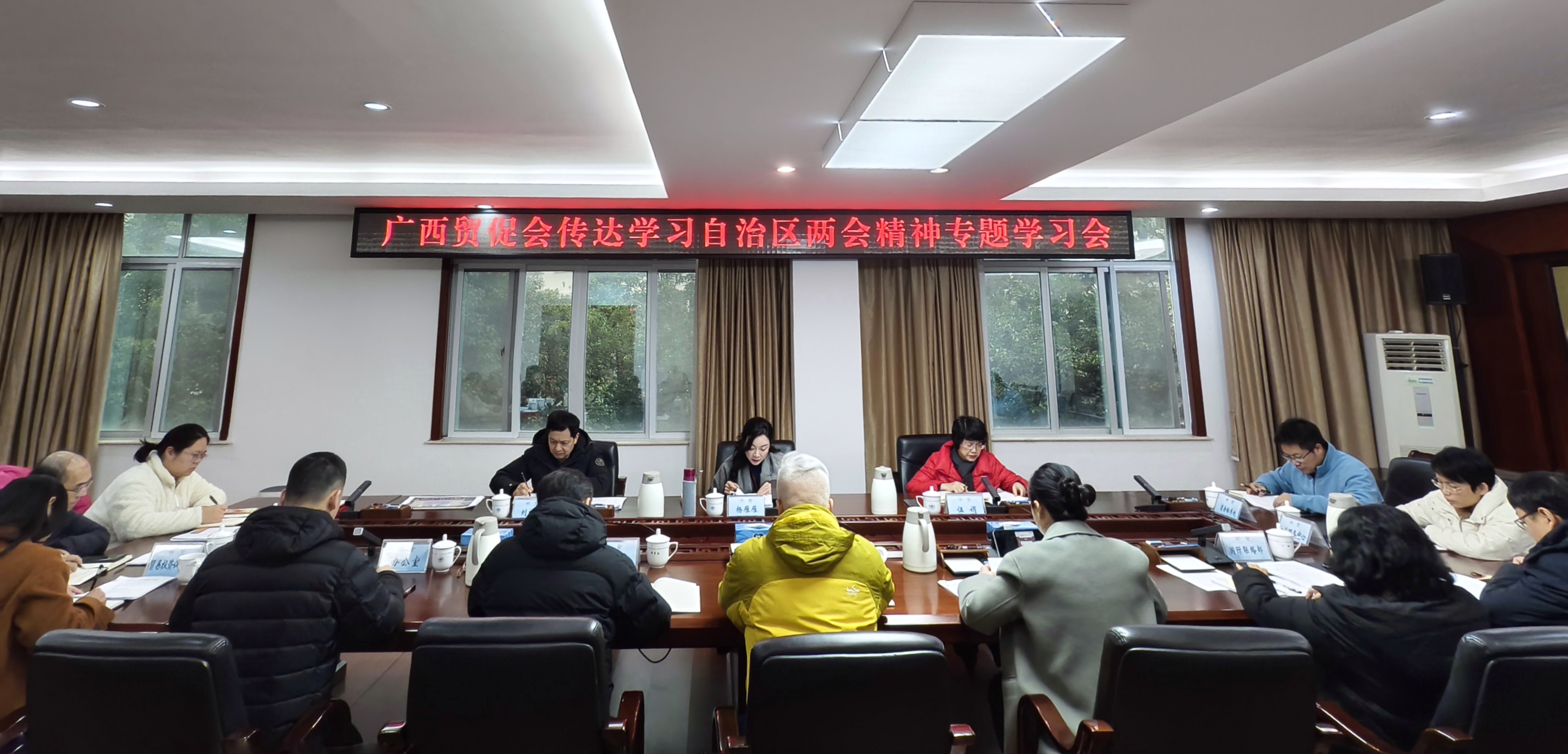 1月27日,广西贸促会召开传达学习自治区两会精神专题学习会,传达学习自治区十四届人大二次会议、自治区政协十三届二次会议精神,研究部署贯彻落实措施。广西贸促会党组成员、巡视员、各部门负责人参加会议。广西贸促会党组书记、会长杨雁雁主持会议并讲话。