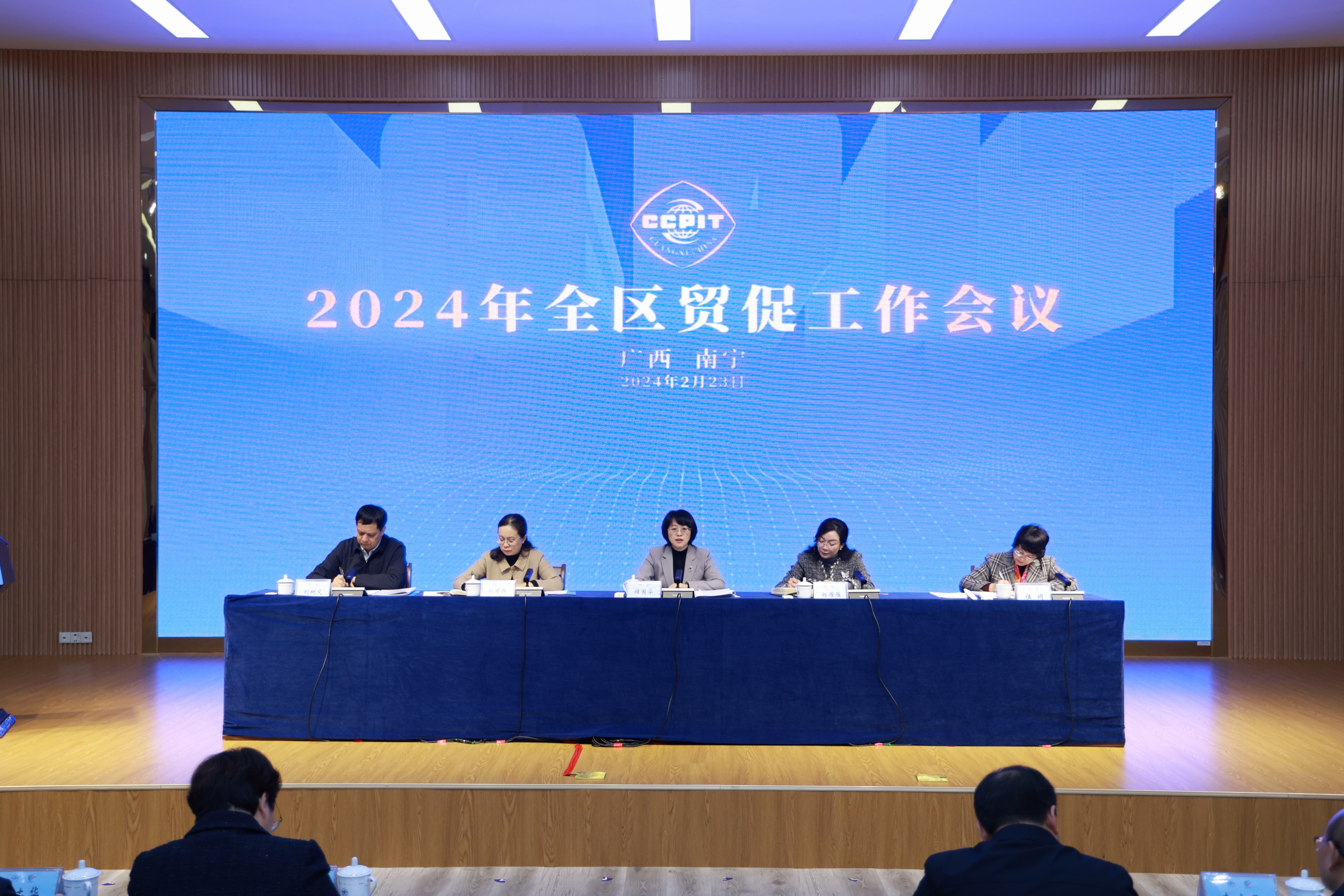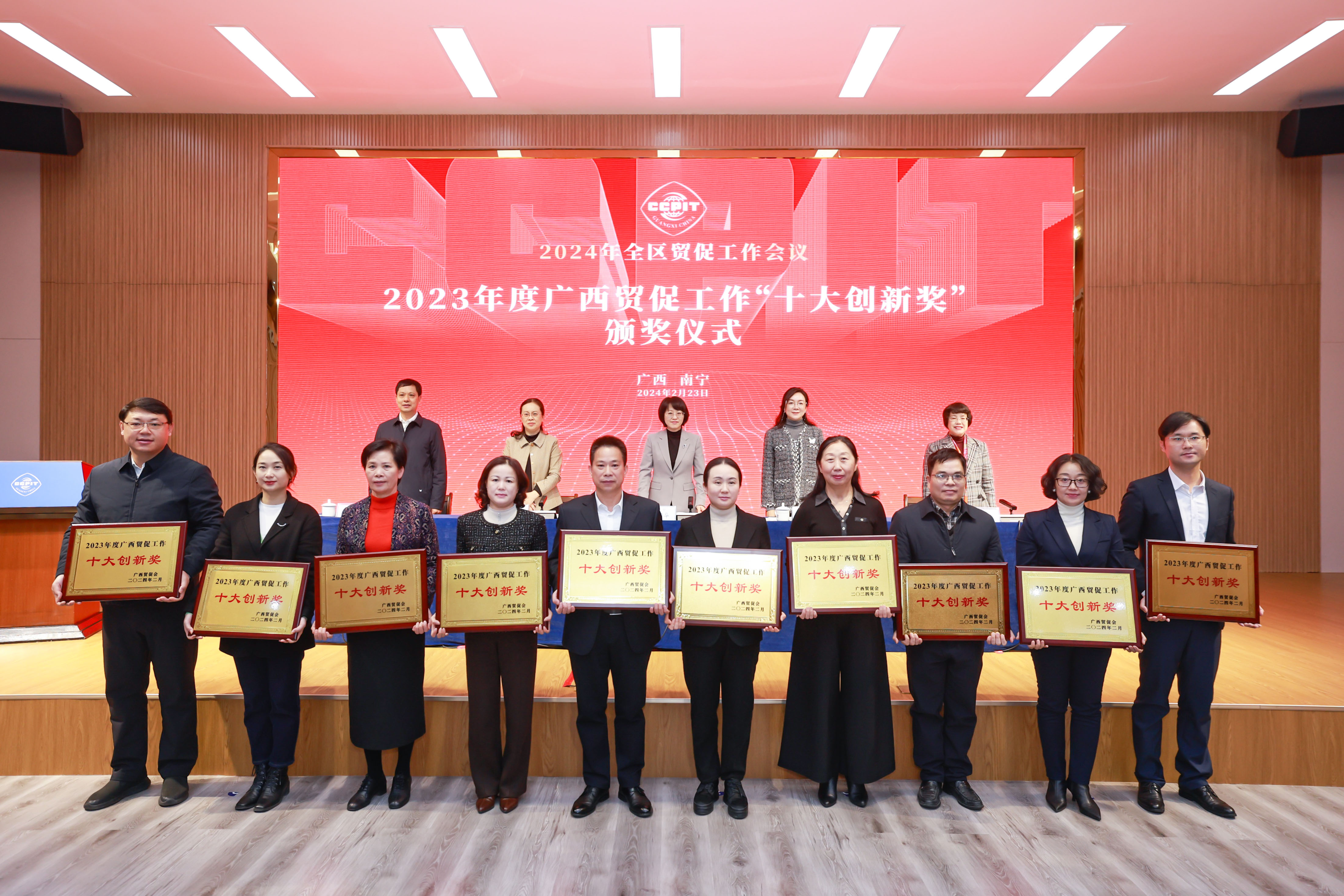 会议传达学习全国贸促工作会议精神,举行了2023年度广西贸促工作“十大创新奖”颁奖仪式,为“首次举办中国—东盟跨境供应链创新发展论坛”等10项创新成果颁奖。