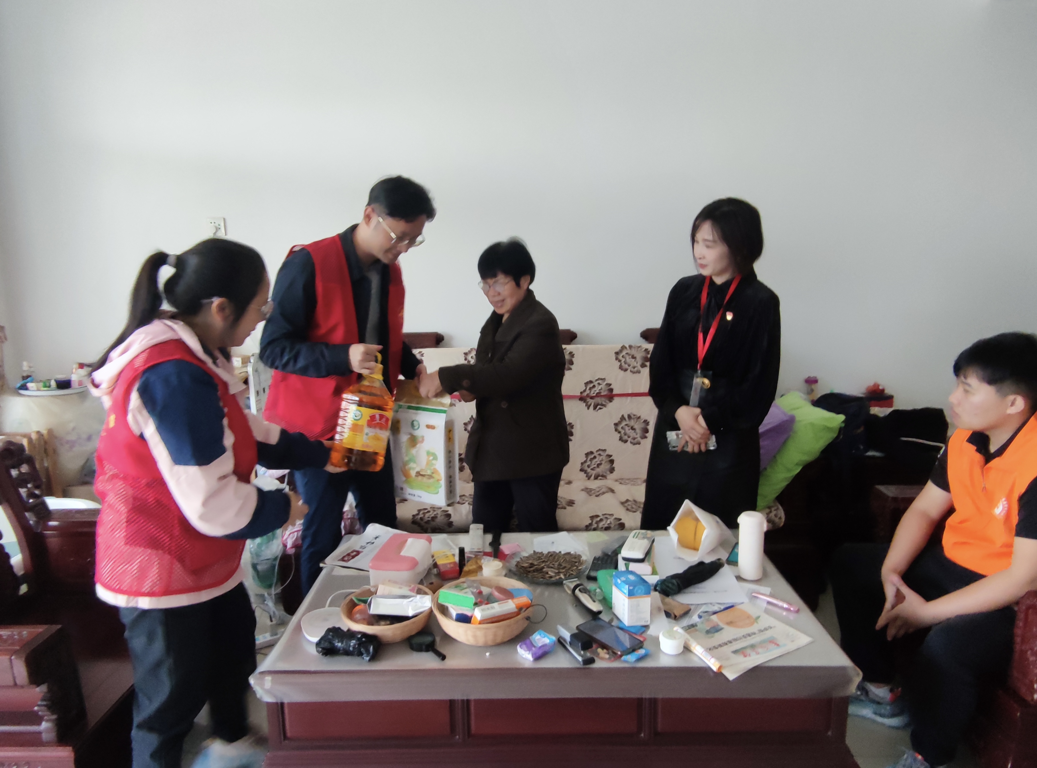 活动现场,志愿者们身穿红色马甲,赴3家社区困难户慰问,帮助孤寡老人、失业单亲家庭、残障人士理发、搞卫生,送上慰问物资,通过为群众办实事践行雷锋精神。