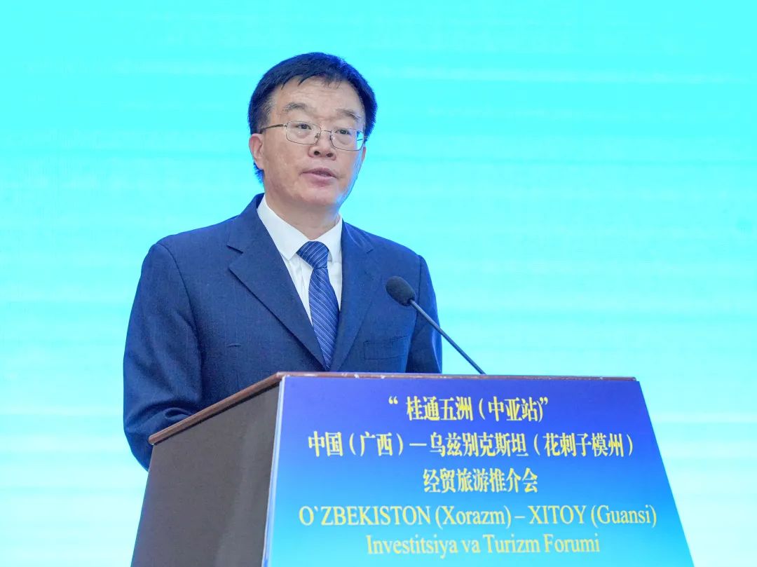 广西日报讯 4月18日,苗庆旺出席“桂通五洲(中亚站)”中国(广西)—乌兹别克斯坦(花剌子模州)经贸旅游推介会,介绍我区产业发展、文旅资源等优势,发出与乌方携手高质量共建“一带一路”、共建国际陆海贸易新通道、深化经贸旅游合作等倡议。
