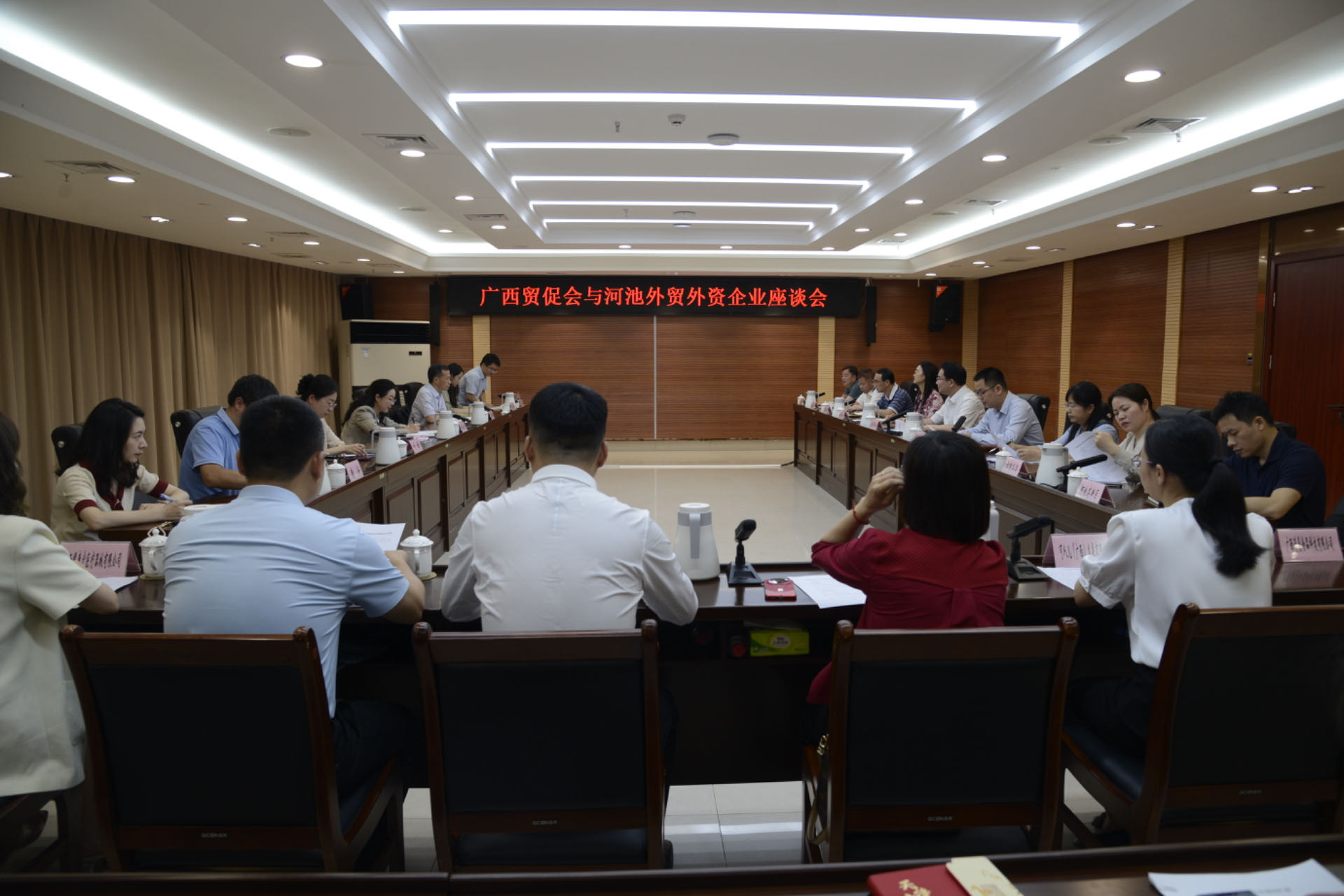 4月26日,调研组与河池市相关部门、外贸外资企业举行工作座谈。河池市副市长陆景宇介绍了近年来河池市社会经济发展状况、招商引资及外贸外资情况。杨雁雁对企业在对外贸易投资和对外交流合作中遇到的问题和诉求予以回应,并表示广西贸促会将充分发挥贸促会联通政企、融通内外、畅通供需的独特优势,用好中国—东盟商务与投资峰会和中国—东盟商务理事会等高能级对外开放合作平台,助力河池外向型企业发展壮大,有效服务地方实体经济,服务河池对外开放高质量发展。