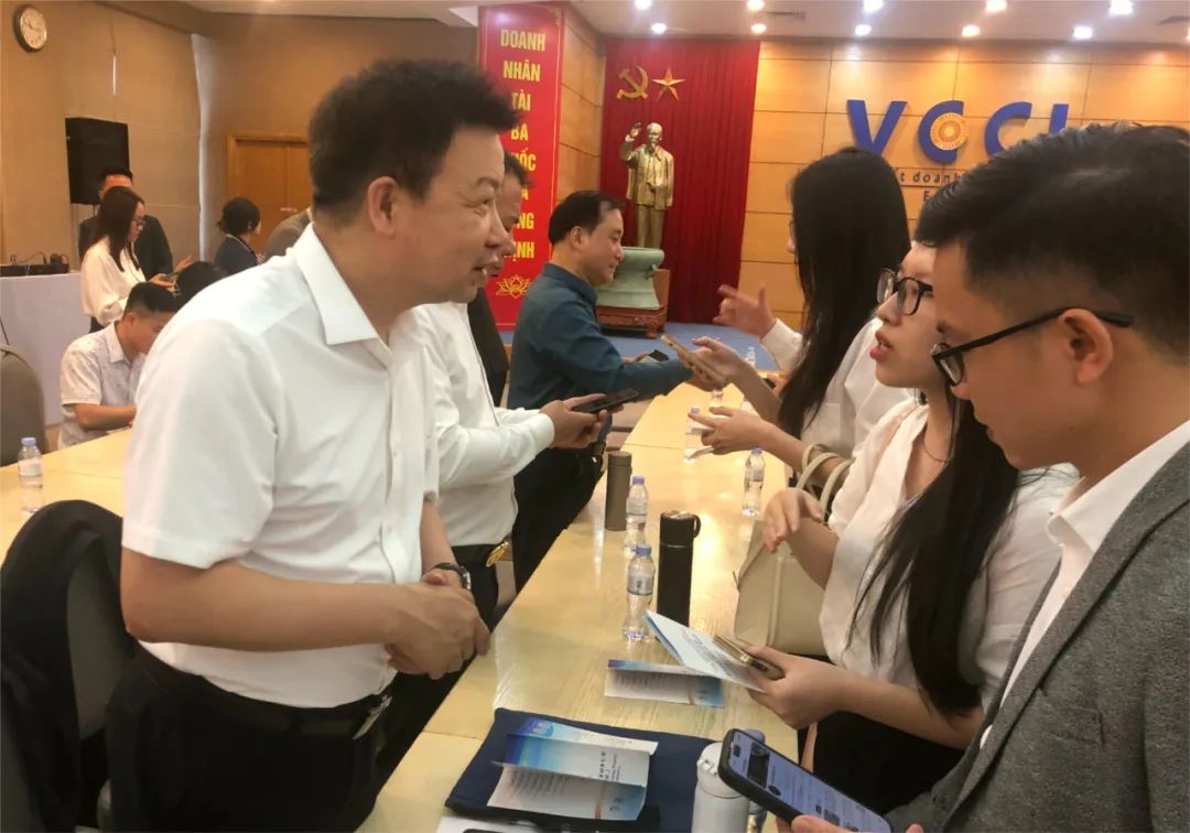 6 月10 日,广西贸促会代表团拜访了越南工商会、春球集团,双方围绕建筑建材、新能源、电子材料和电子装备制造、产业园区投资、农产品进出口等领域进行了经贸合作洽谈及对接。
