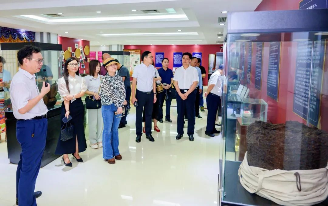 近日,广西贸促会、广西国际商会副会长刘树义一行到广西八桂六堡茶博物馆调研并座谈,博物馆执行馆长黄永燕陪同并介绍情况,广西国际商会30多家会员企业参加活动。