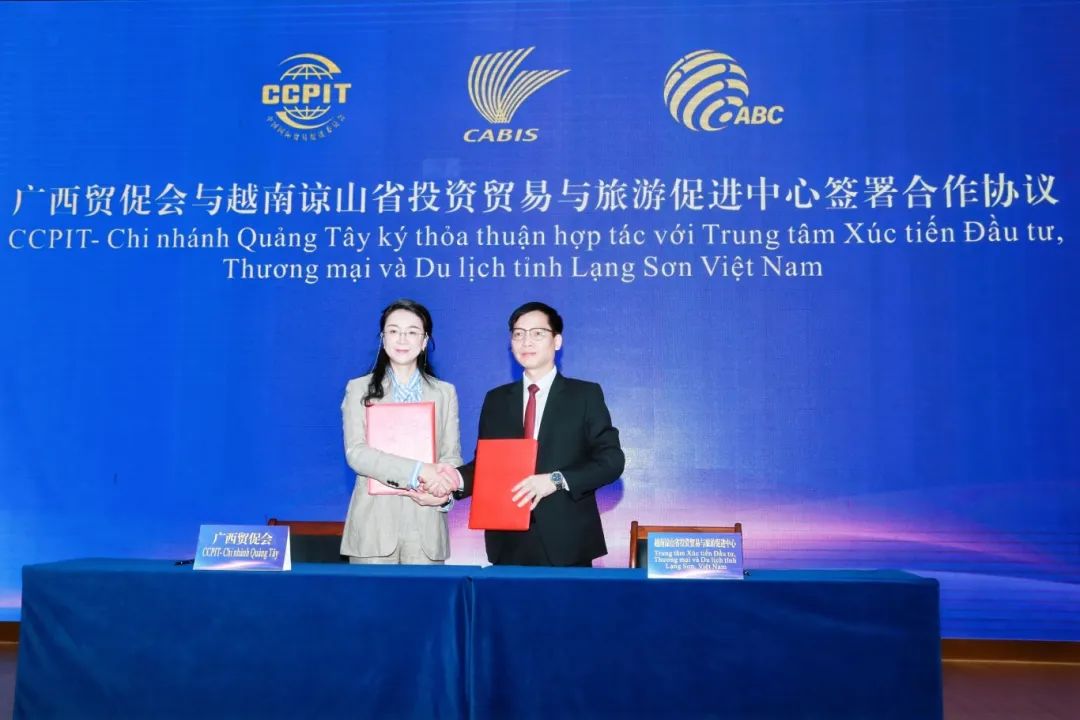 在会上,广西贸促会与越南谅山省投资贸易与旅游促进中心签署合作备忘录,为今后双方更紧密服务企业奠定基础。