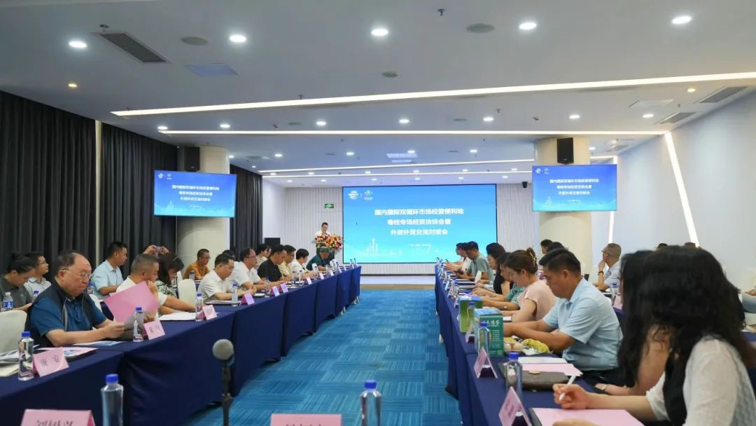 与黄埔区贸促会共同举行国内国际双循环市场经营便利地粤桂专场经贸洽谈会暨粤桂外资外贸交流对接会,刘树义推介广西经济社会发展情况,分享服务外资工作做法;黄埔区贸促会介绍了黄埔区总体情况,宣传了“企服电波”平台。广西县域电商发展促进会、广西健康食品集团有限公司等企业代表作业务推介和经验分享,广州珍宝巴士、捷普电子(广州)有限公司、广东卓志供应链科技集团有限公司等企业代表分享了发展历程和经验。洽谈会上,双方企业代表积极发言、推介,互动响应、务实寻求业务合作,气氛热烈,在供应链、农副产业、食品、旅游开发等领域碰撞出了合作的火花,并在会后深入探讨。