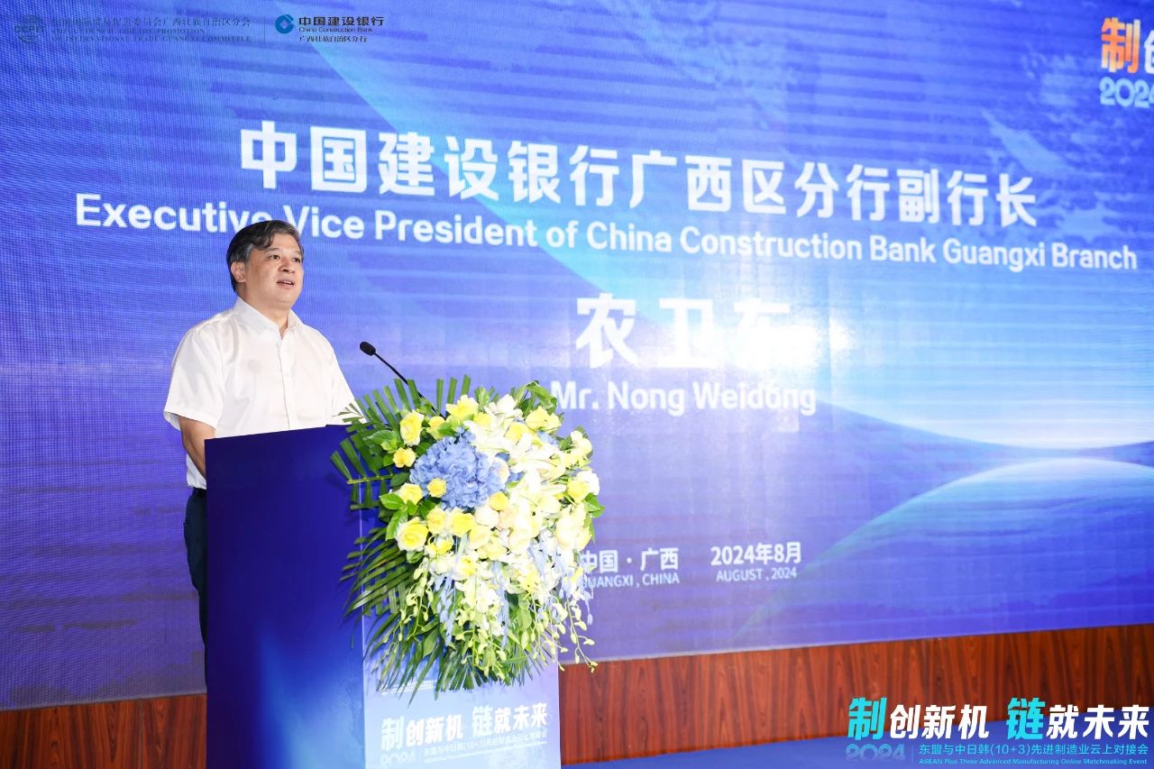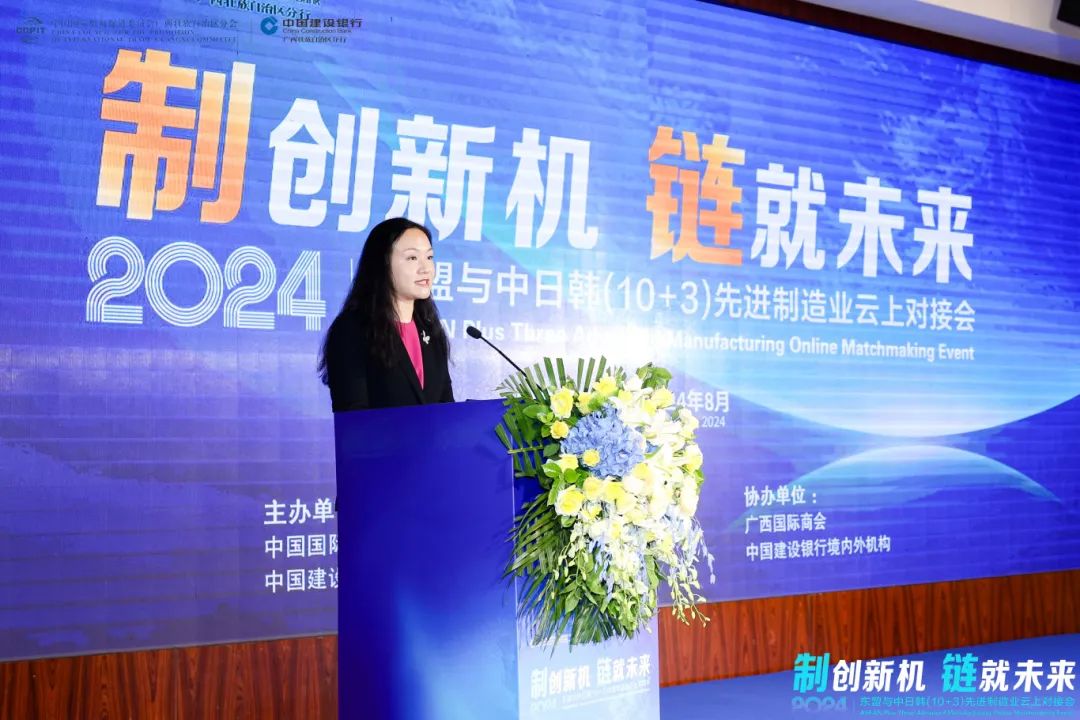 合则立,合则惠,合则兴,至上之合,共生共赢。为贯彻落实党中央、国务院稳外贸稳外资政策部署,促进国内国际双循环,推动东盟及中日韩(10+3)在先进制造业领域的深度合作,2024年8月13日,广西贸促会和建行广西分行联合主办、建行南宁自贸区支行承办的“制创新机 链就未来”东盟与中日韩(10+3)先进制造业云上对接会在南宁成功举办。本次对接会采用线上线下相结合的方式,通过建行“全球撮合家”平台,为境内外百余家来自新能源(汽车、锂电、光伏等)、新材料、机械装备等先进制造业企业提供全球撮合服务。