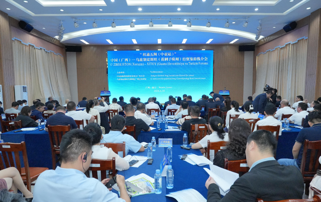 2024年4月18日,由广西贸促会与乌兹别克斯坦驻广州总领事馆共同主办的“桂通五洲(中亚站)” 中国(广西)—乌兹别克斯坦(花剌子模州)经贸旅游推介会在南宁举行。会上,广西贸促会、花剌子模州工商协会签署合作备忘录,双方就组织企业家代表团参与峰会和双边重要经贸活动、加强信息交流、支持商务往来等方面达成共识。