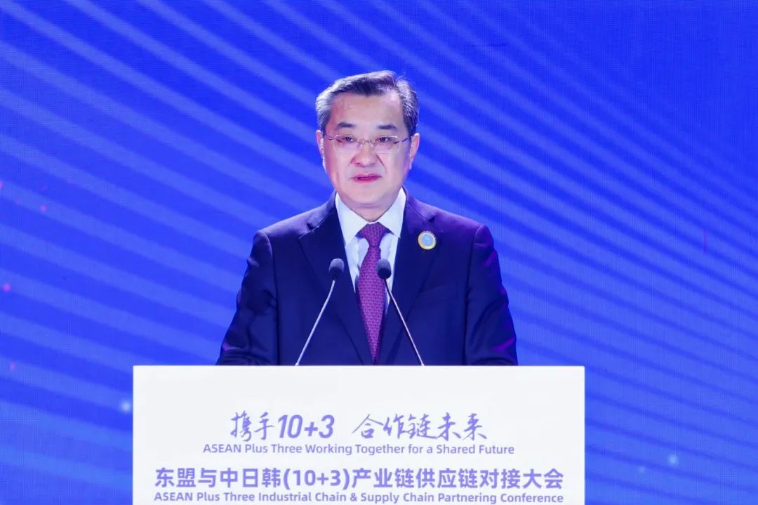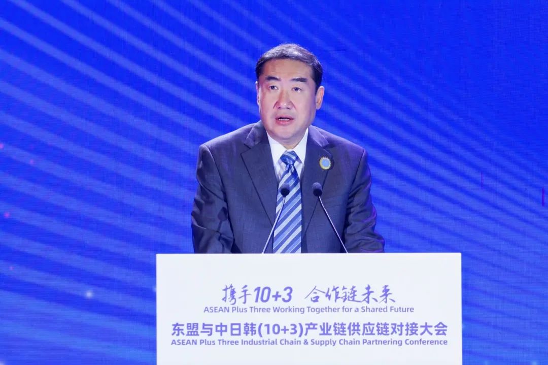 李飞在致辞中表示,东盟与中日韩同为世界重要经济体,产业链供应链紧密联系,彼此之间互为重要的贸易投资伙伴,正形成日渐紧密的利益共同体、命运共同体。本次对接大会将推动区域及全球产业链供应链稳定繁荣发展。