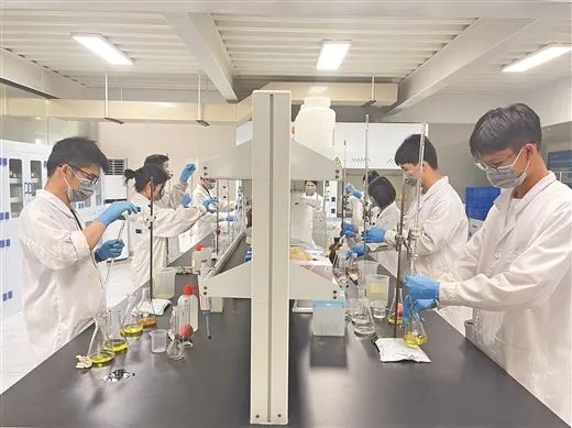 桂润环境科技股份有限公司实验室里,员工对现场取回水样进行日常化验分析