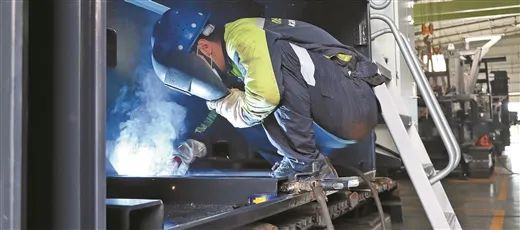 10月25日,记者走进广西美斯达工程机械设备有限公司生产车间,工人正在进行电焊作业。