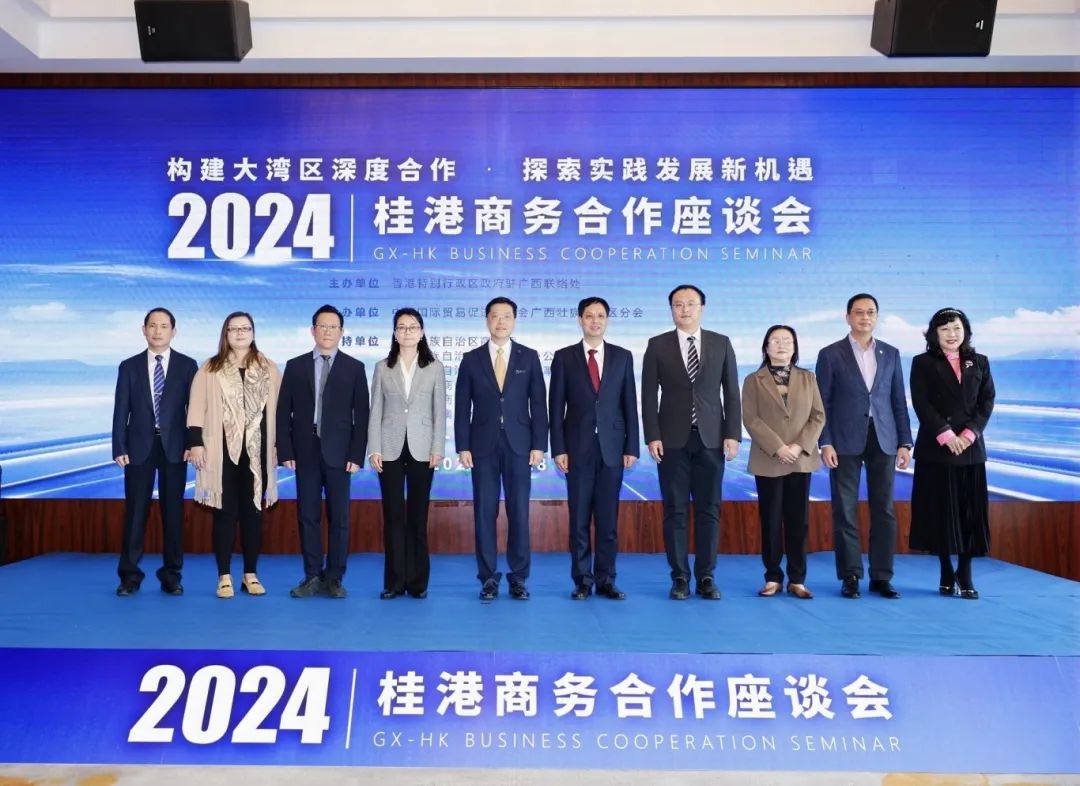 11月28日,构建粤港澳大湾区深度合作·探索实践发展新机遇——2024桂港商务合作座谈会在南宁举行。座谈会由香港特别行政区政府驻广西联络处和广西贸促会联合主办,旨在推动落实今年5月刘宁书记率广西代表团访问香港所达成的成果。广西贸促会副会长、广西国际商会副会长刘树义出席座谈会并致辞。