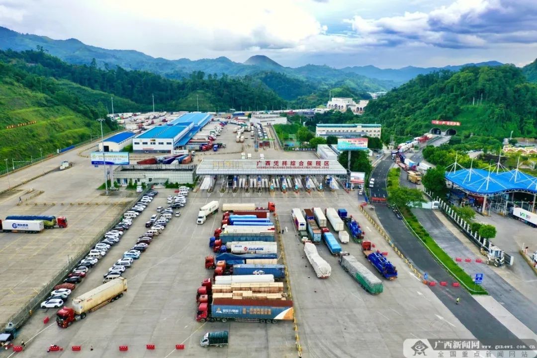 在凭祥友谊关口岸,通过一站式通关、全信息化智能通关、进出口货物“提前审结、卡口验放”等一系列改革措施,车辆通关时间不断提速,单日最高通行量屡创新高。