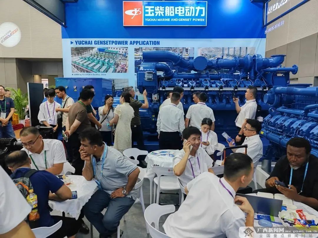▲今年第135届广交会上,广西玉柴重工有限公司的产品获得境外客商关注,双方在展位洽谈对接合作。自治区商务厅供图