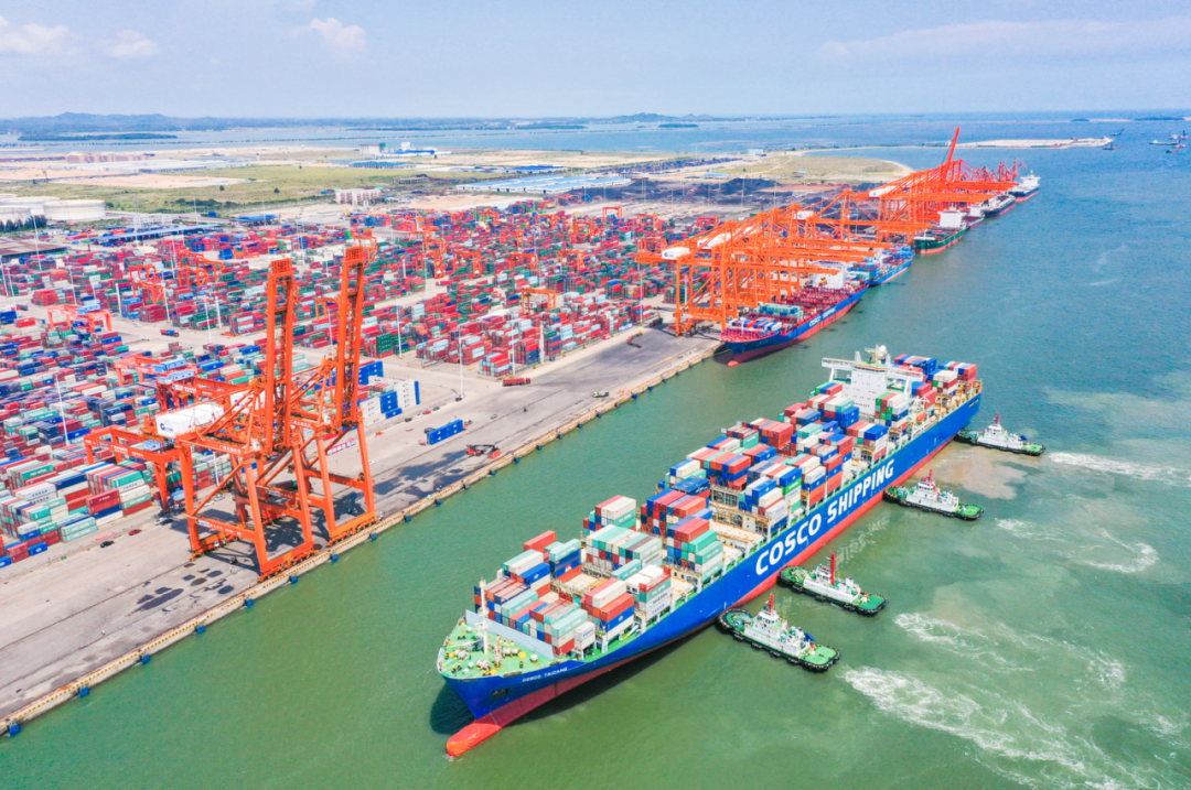 北部湾国际门户港枢纽功能持续提升。北部湾港综合吞吐能力超3.5亿吨,集装箱航线达76条,实现东盟国家主要港口全覆盖。集装箱吞吐量从2019年的382万标箱增长至2023年的802万标箱,年均增长20.4%。今年1—8月,集装箱吞吐量完成581.7万标箱、同比增长16%,货物吞吐量完成2.97亿吨、同比增长4.4%。