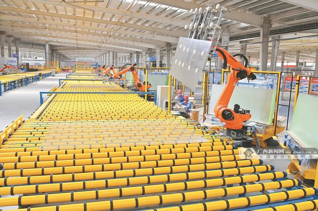 北海铁山东港产业园一家光伏玻璃生产企业,机器人正在自动化作业。林启波 摄