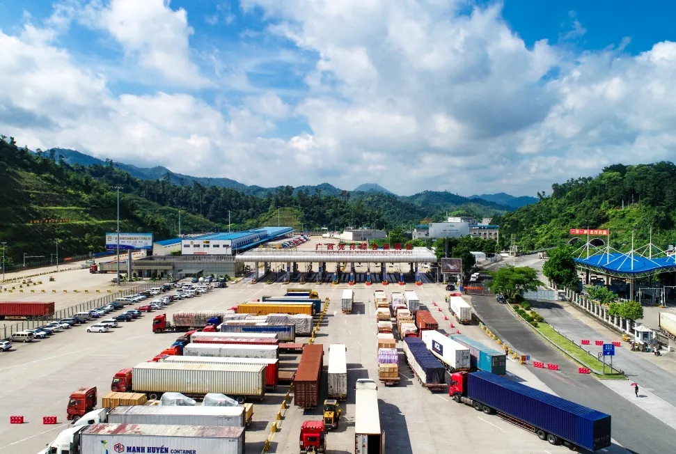 10月8日,位于中越边境的友谊关口岸,装载锂电池、大型机械设备等机电产品的跨境车辆络绎不绝,一派繁忙景象。