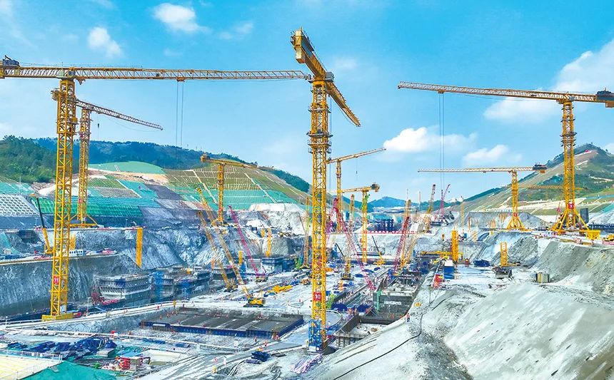 ▲平陆运河马道枢纽塔吊林立。图源平陆运河集团