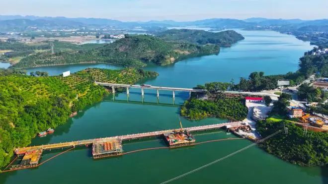 百色市右江区,黄桶至百色铁路接入南昆铁路永乐至百色间增建二线的关键工程——那蒙澄碧河特大桥首个水中墩桩基近日动工开钻,这标志着黄百铁路广西段桥梁工程正式启动。