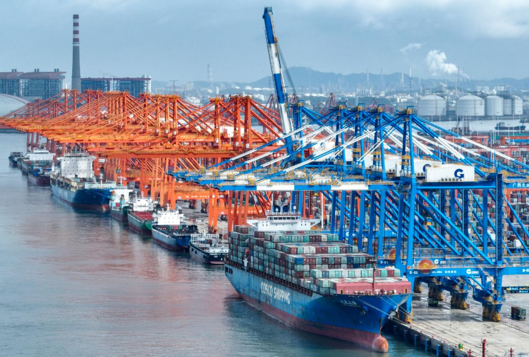 作为全球首个采用“U”形布局的自动化码头,北部湾港钦州自动化集装箱码头通过创新运行模式,配备自动化装卸及水平运输机械装备,结合人工智能、大数据、云计算、自动控制等技术,实现了高度信息化、标准化和作业全自动化。北部湾港钦州自动化集装箱码头智慧运营中心负责人介绍,“如今工作人员只需在控制室内轻点按键,即可完成上万吨货物的装卸。相较于传统码头,自动化码头的作业效率提升30%,操作人员减少70%。”