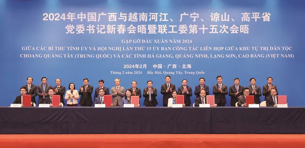 积极融入共建“一带一路”。今年以来,广西代表团访问越南、文莱、印尼等东盟国家,举办广西与越南边境四省党委书记新春会晤暨联工委会晤,深化各领域交流和务实合作,从地方层面贯彻落实习近平总书记同有关国家领导人达成的重要共识,更好服务构建更为紧密的中国—东盟命运共同体和高质量共建“一带一路”。