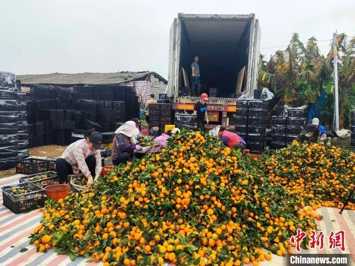 近日,在广西南宁市西乡塘区坛洛镇同富村,村民在采摘砂糖橘供应海内外市场。中新社记者 黄艳梅 摄