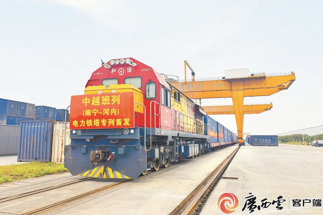 3月8日,广西首趟电力铁塔中越班列从南宁国际铁路港开出。刘雅琴/摄