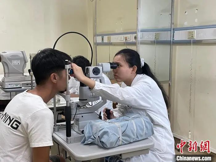 ▲广西南宁,邓善杏在给患者做眼部检查。陈秋霞 摄