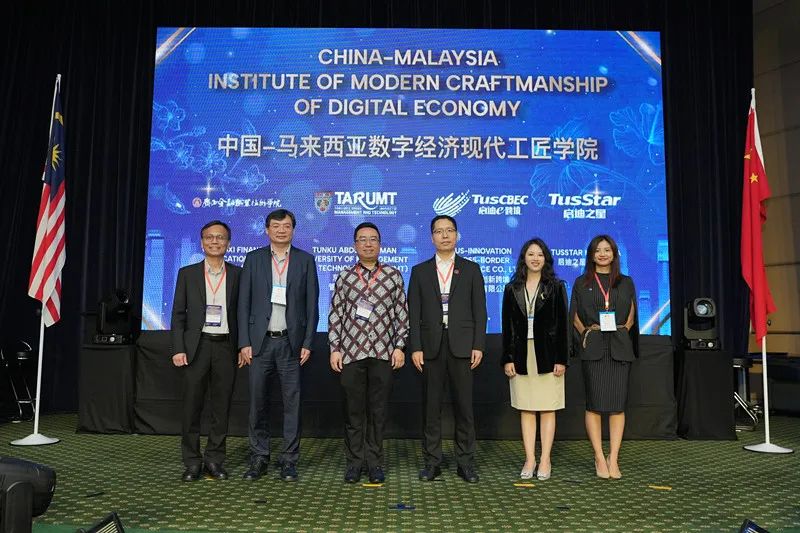 ▲中国—马来西亚数字经济现代工匠学院在第二届科创跨境—中马科技创新论坛上揭牌