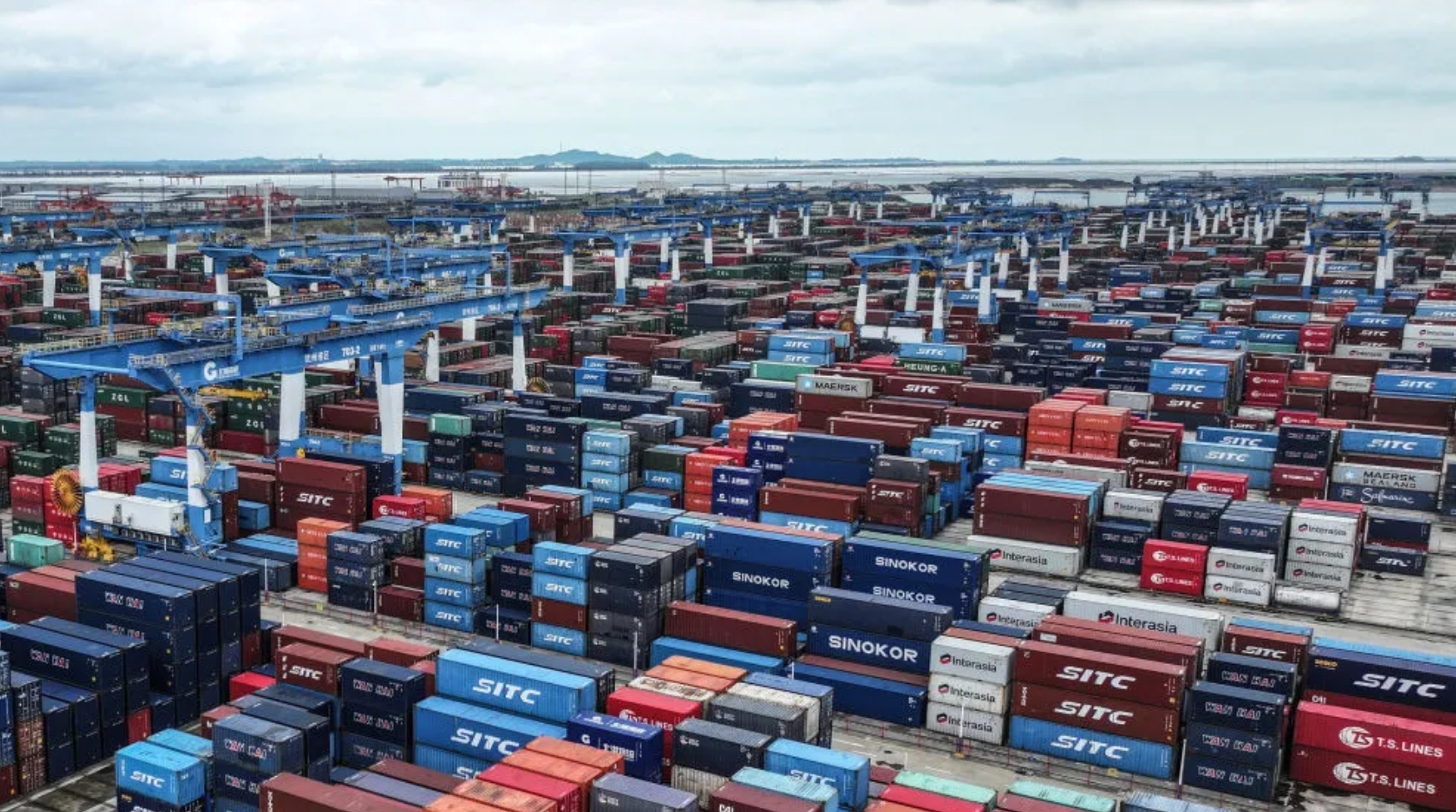 钦州港集装箱装卸自动化码头的集装箱储放地(2024年5月19日摄,无人机照片)。