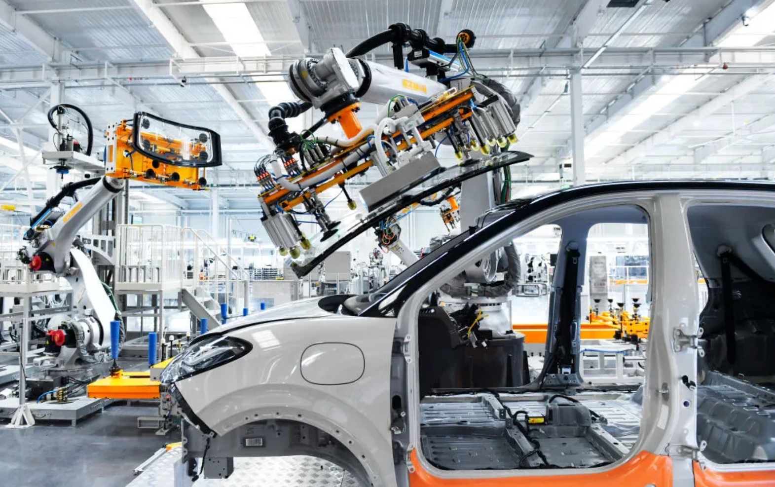 在广西柳州市上汽通用五菱精益智造工厂,机器人为汽车装配挡风玻璃(2024年5月9日摄)。上汽通用五菱建成的“柳州研发和零部件生产—印尼整车组装和市场销售”产业链,是中国与东盟国家不断深化投资和产能合作的生动缩影。