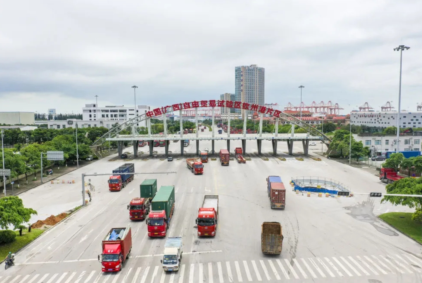 中国(广西)自由贸易试验区钦州港片区(2024年5月20日摄,无人机照片)。聚焦面向东盟、服务陆海新通道、沿边开放三大特色,开展差异化探索和特色制度创新,让中国(广西)自由贸易试验区成为我国面向东盟开放发展的前沿。