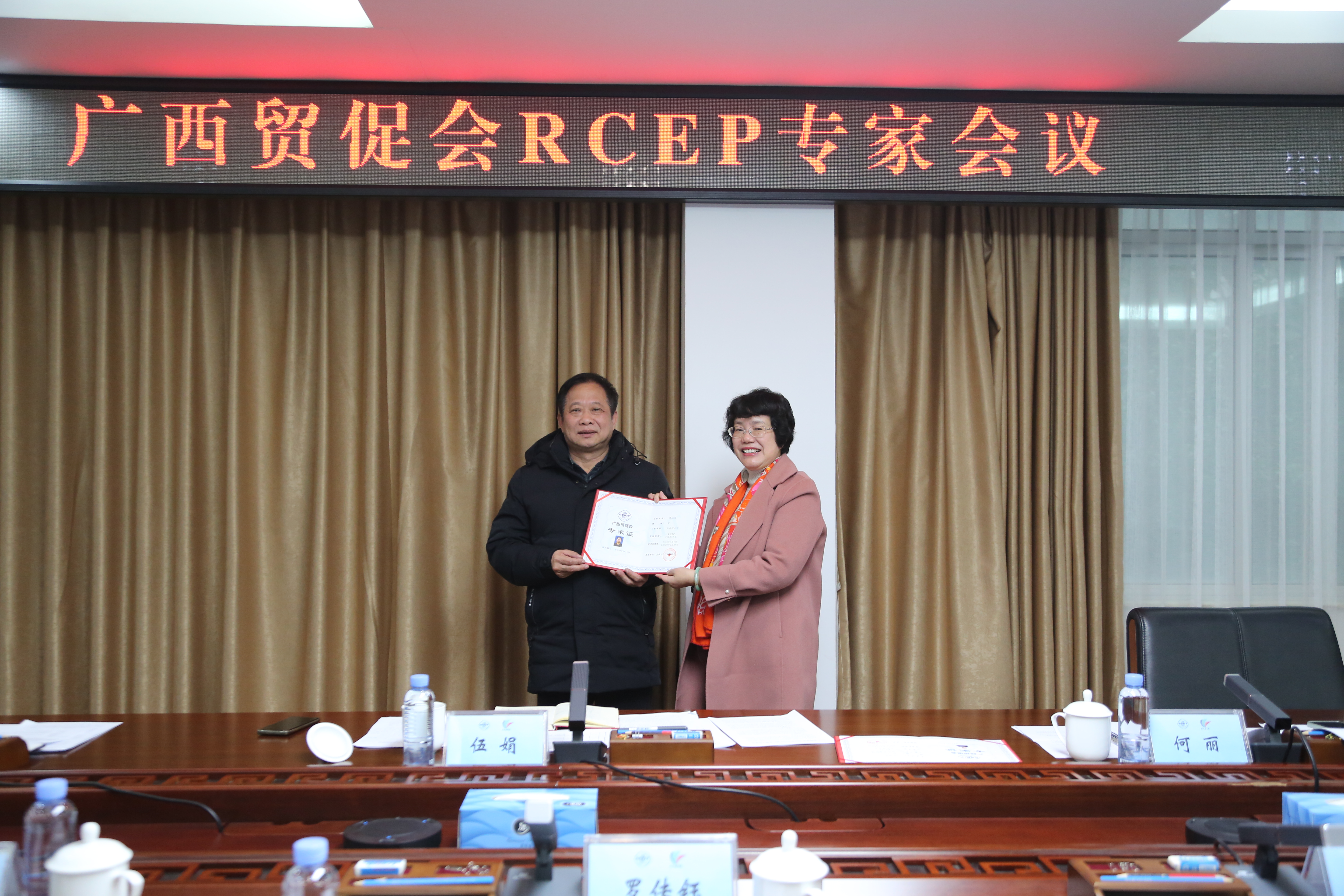 2月29日,广西贸促会召开RCEP专家会议,9位受聘专家和3位新聘专家通过线上线下的方式参加了会议。广西贸促会副会长伍娟出席会议并讲话。