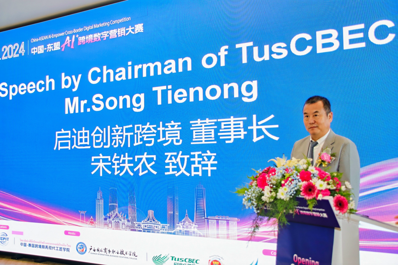 在广西壮族自治区商务厅与广西贸促会的指导下,本次大赛由中国—泰国跨境商务现代工匠学院主办,该学院由广西国际商务职业技术学院牵头,联合广西启迪创新跨境电子商务有限公司、泰国北柳职业学院、泰国春武里职业学院等共建,承办方为启迪创新跨境。大赛汇聚了来自中国和泰国、马来西亚、越南等多个东盟国家的上百支精英团队,共同在AI+跨境数字营销领域同台竞技。