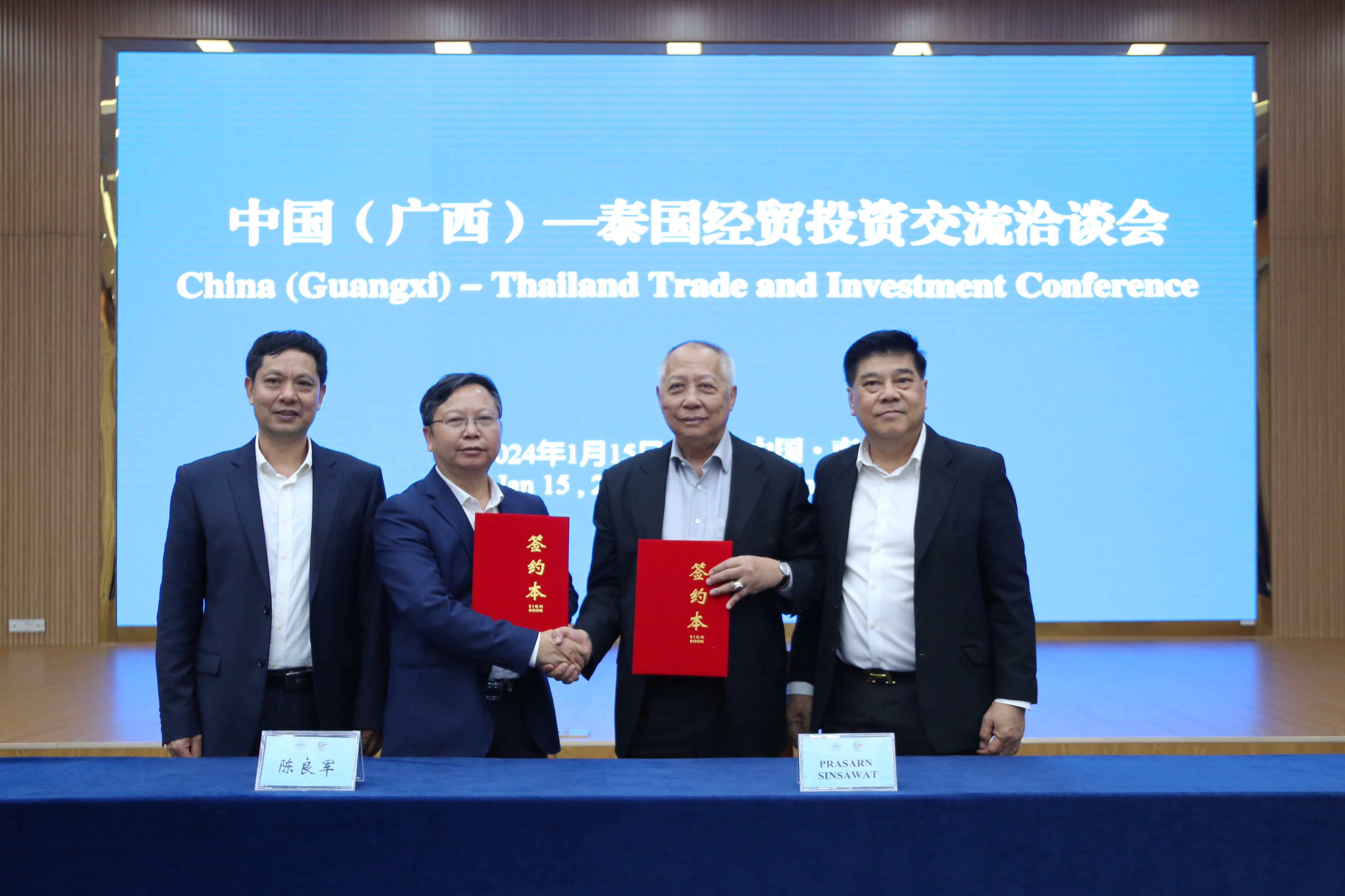 在会上,泰国边境贸易和投资协会会长巴讪·信沙瓦介绍了泰国跨境贸易和农产品生产经营情况及投资商机。双方企业围绕农产品国际贸易、跨境物流、国际文化旅游等领域进行了深入交流洽谈,开展优势产业项目对接。通过洽谈交流,双方企业建立起了合作联系,推动企业间务实合作。会上,广西蓝科农业科技有限公司、广西侨之家投资有限公司等公司分别与泰国边境贸易和投资协会签订了合作框架协议,达成初步意向,在中泰两国共同建立农产品展销中心等项目。下一步,广西贸促会将充分发挥好业务职能,进一步推动广西国际商会与泰国边境贸易和投资协会建立常态化沟通对接机制,推动双方企业开展务实合作,助推项目早日落地。