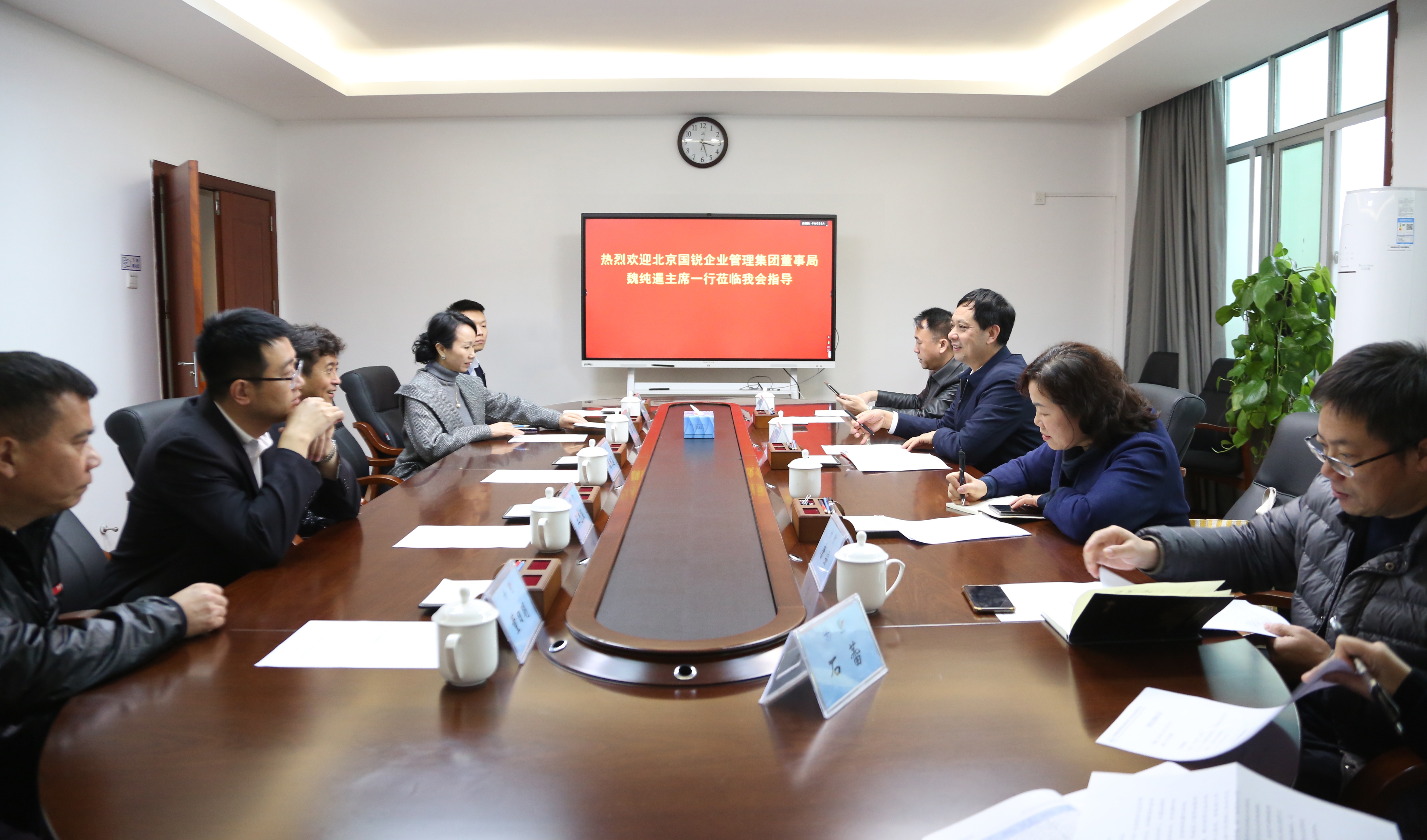 2024年1月31日上午,广西贸促会副会长刘树义与来访的北京国锐企业管理集团有限公司(以下简称国锐集团)董事局主席魏纯暹一行进行座谈,双方围绕广西文旅项目投资合作、跨境电商及新能源汽车开拓东盟市场等领域开展交流,并就携手侨商进一步促进京桂经贸合作达成共识。