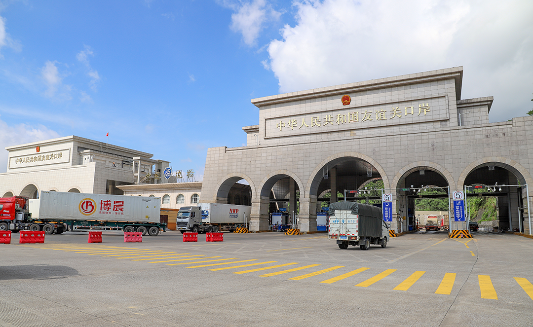 9月22日,地处中越边境的友谊关口岸内,满载电子元件、大型机械设备的货车从这里出发奔赴东盟国家,为高质量共建“一带一路”增添新动力。