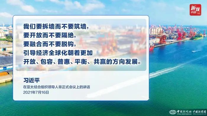 2021年7月16日,国家主席习近平应邀在北京以视频方式出席亚太经合组织领导人非正式会议并发表讲话。