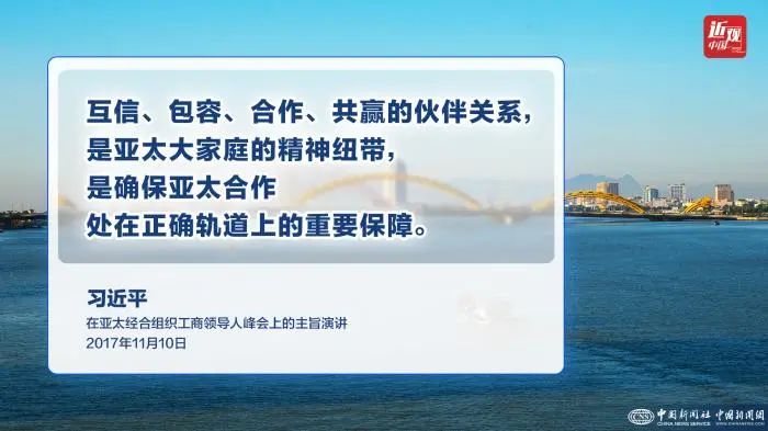 2017年11月10日,国家主席习近平应邀出席在越南岘港举行的亚太经合组织工商领导人峰会并发表题为《抓住世界经济转型机遇 谋求亚太更大发展》的主旨演讲。