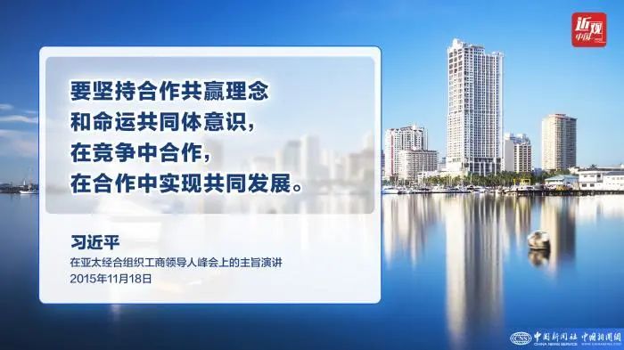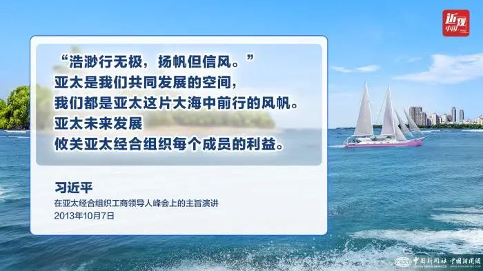 习近平表示,“浩渺行无极,扬帆但信风。”亚太是我们共同发展的空间,我们都是亚太这片大海中前行的风帆。亚太未来发展攸关亚太经合组织每个成员的利益。