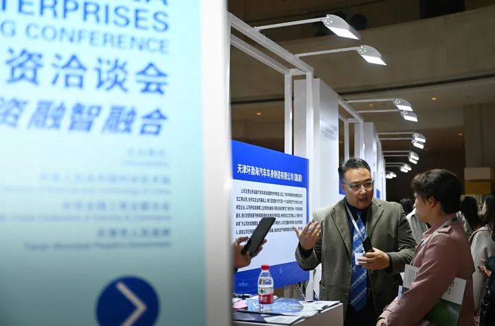 2024年11月13日,与会嘉宾在天津举行的2024中国民营企业投融资洽谈会上对接洽谈。新华社记者 赵子硕 摄
