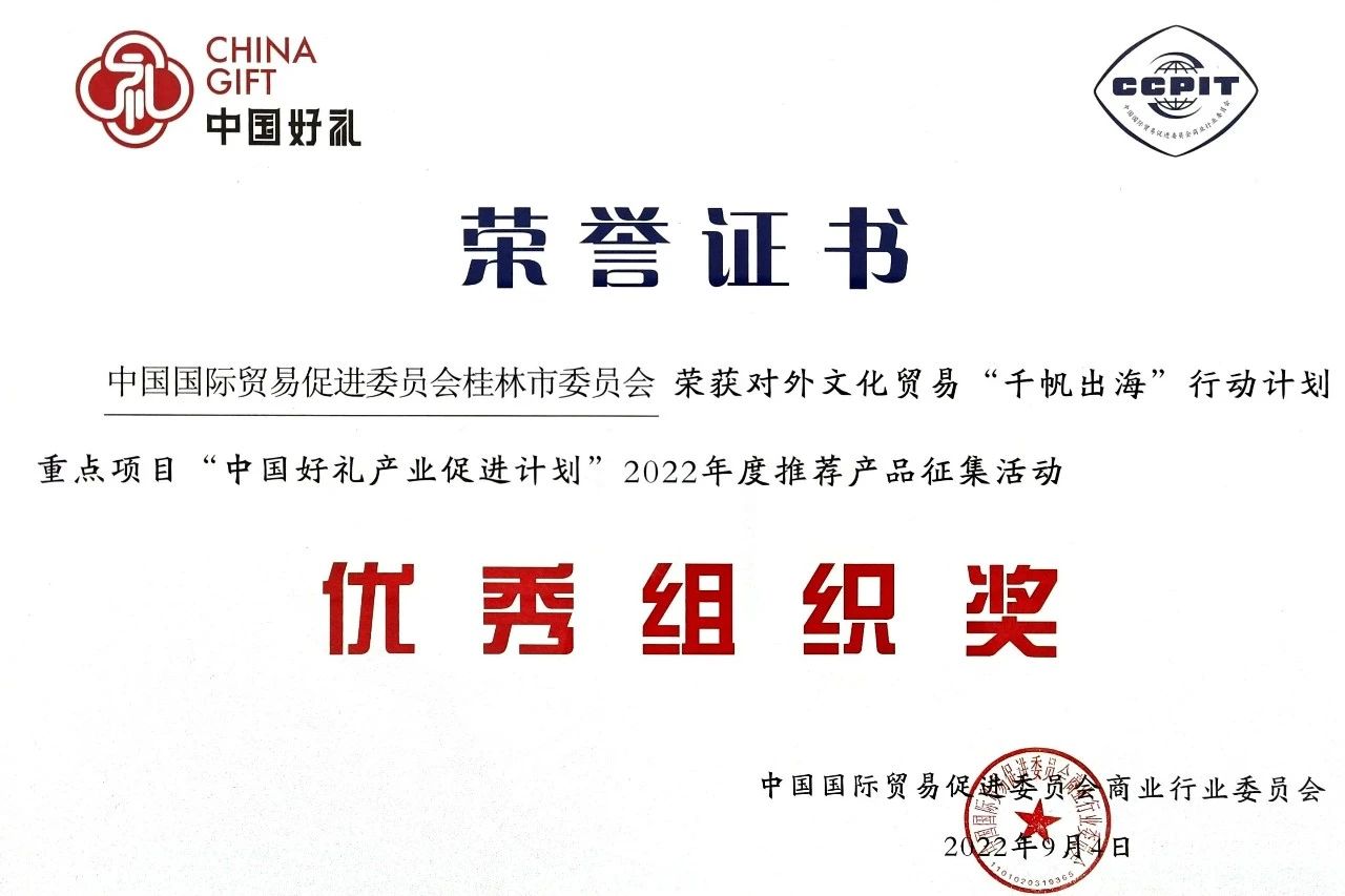 自此活动开展以来,桂林市贸促会已连续三年成功组织桂林近30种产品入选此“国礼”品牌,数量位居广西第一,此举有力发掘了广西优质特色产品的商业价值,助力区域优质特色产品品牌化建设、开拓海内外市场。桂林市贸促会工作受到高度认可,连续三年获评此活动“优秀组织奖”。