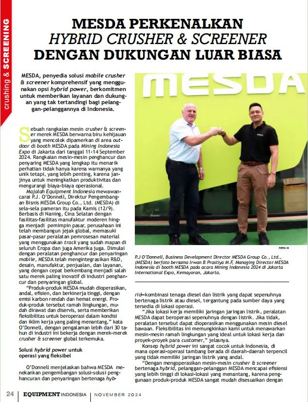 ▲2024年9月11日-14日,广西美斯达国际贸易有限公司参加2024年印尼(雅加达)国际工程机械、矿业机械展览会,获得外国媒体刊登报道
